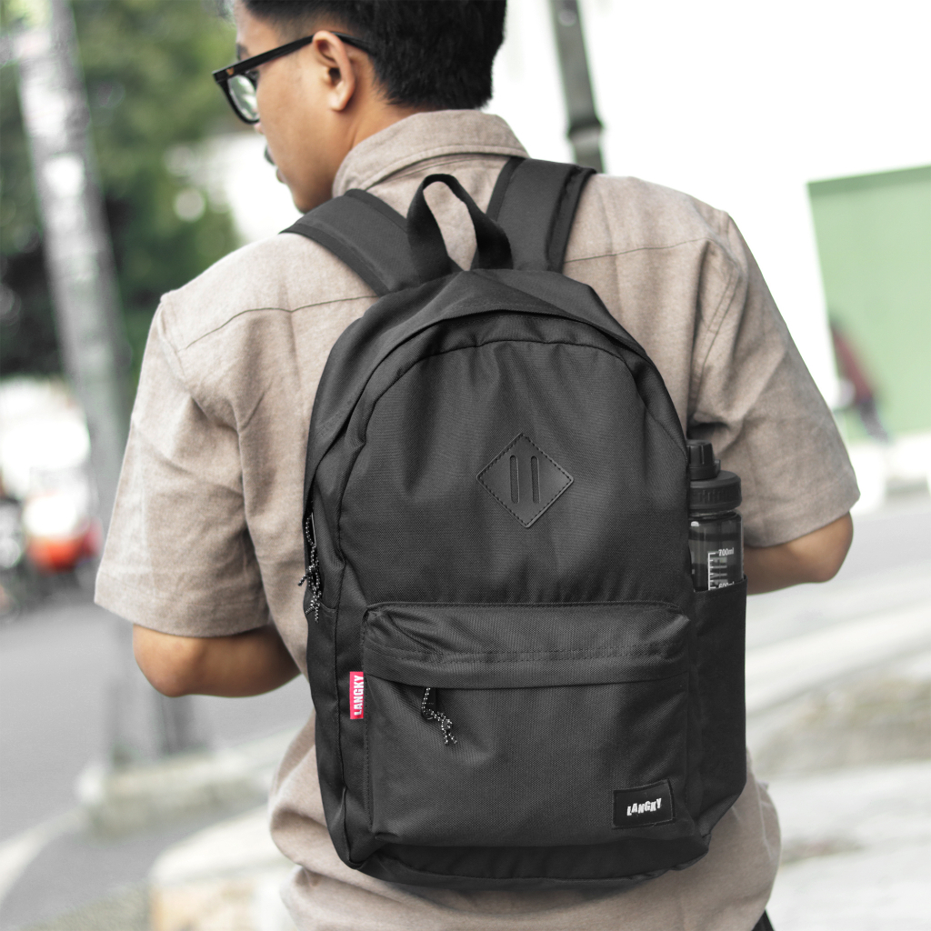 Tas Gendong Sekolah Simple Laptop Ransel Pria Wanita Langky IYCE E Wave Black