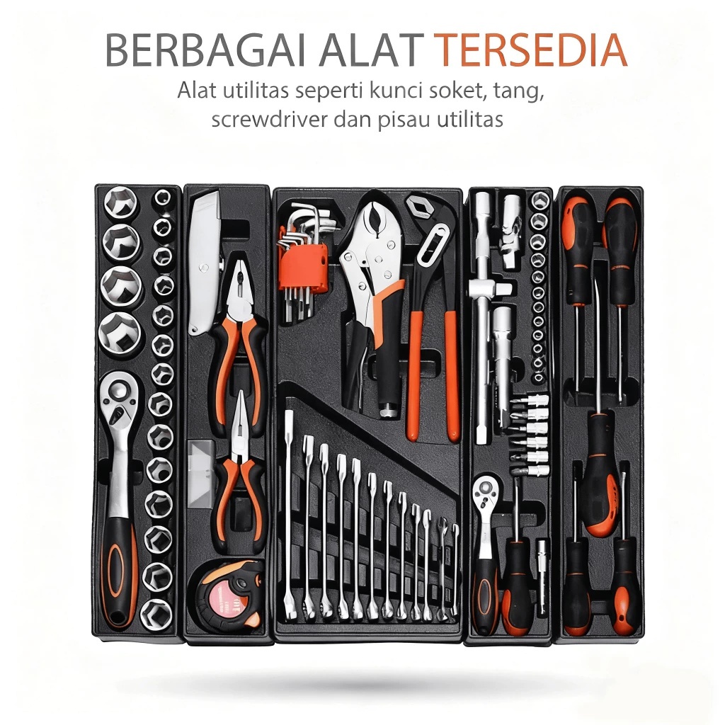 REAIM Tool Kit 85 Pcs Kunci Sok Set Pekerjaan Mobil Tool Box Set Set Alat Bengkel Tool Kit