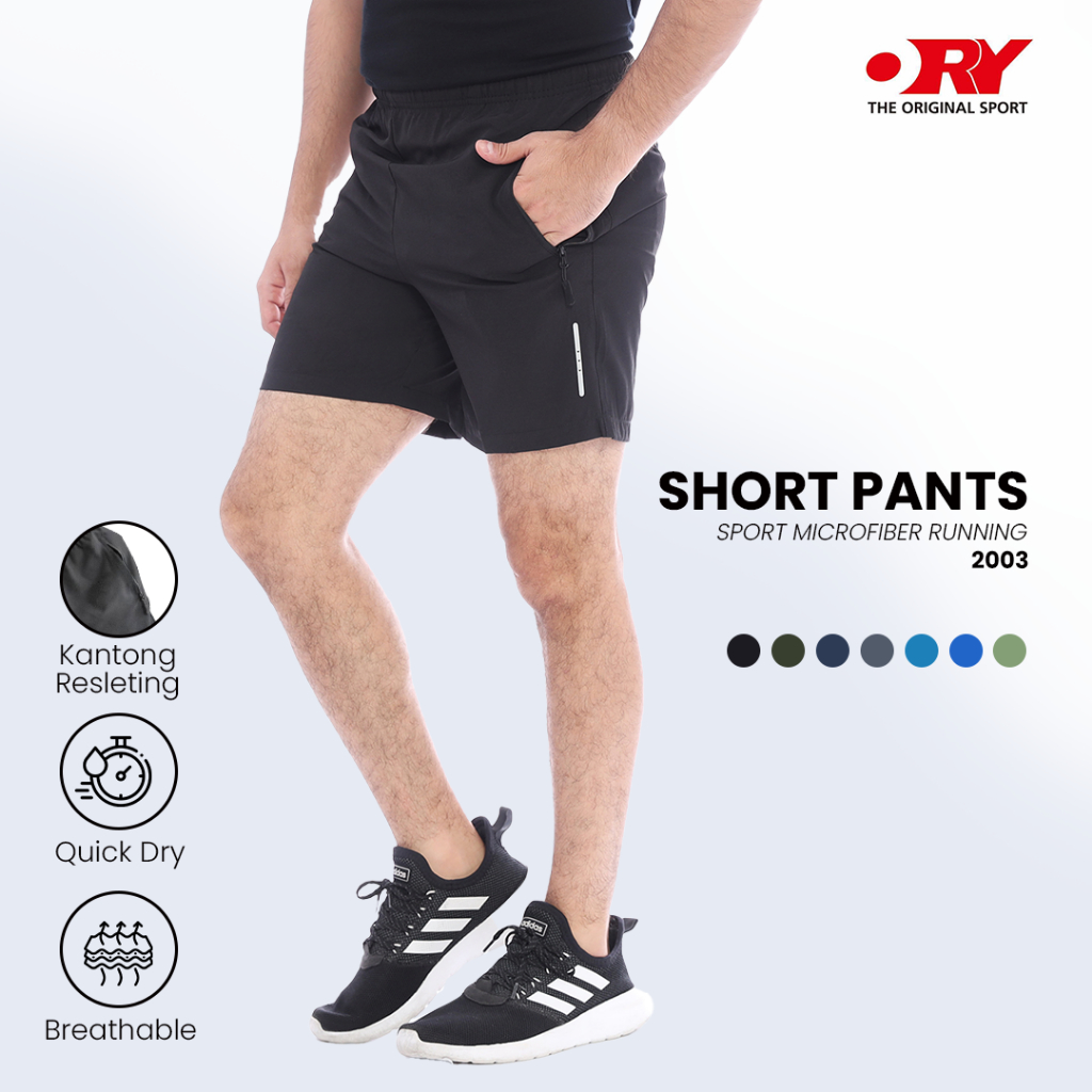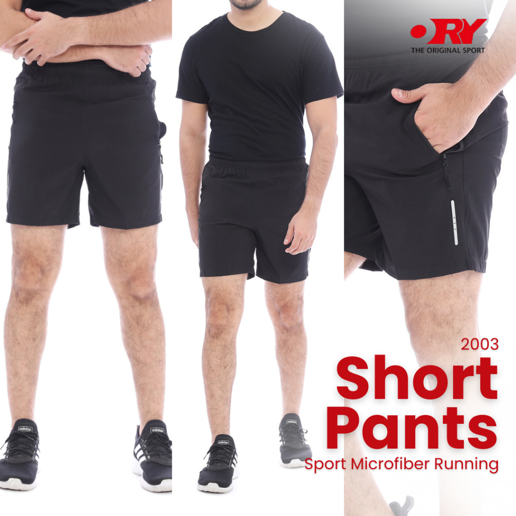 Celana Olahraga Pendek Pria Parasut Micro Running Bahan Elastis Karet Pinggang Tali 2 Saku Resleting List Reflektif