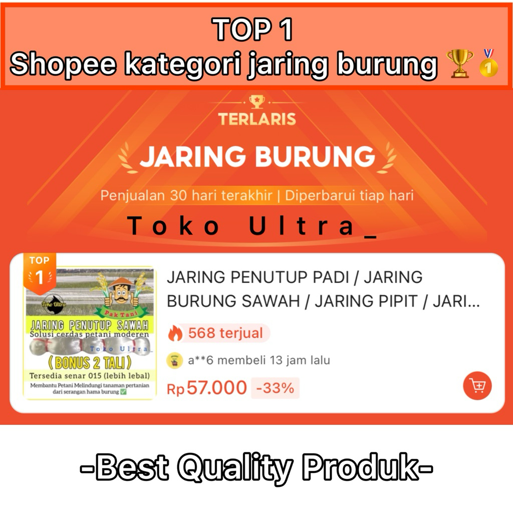 Jaring Penutup Padi / Jaring Burung Sawah / Jaring Pipit / Jaring Emprit / Jaring Padi / Jaring Sawah Petani / Jaring Pe