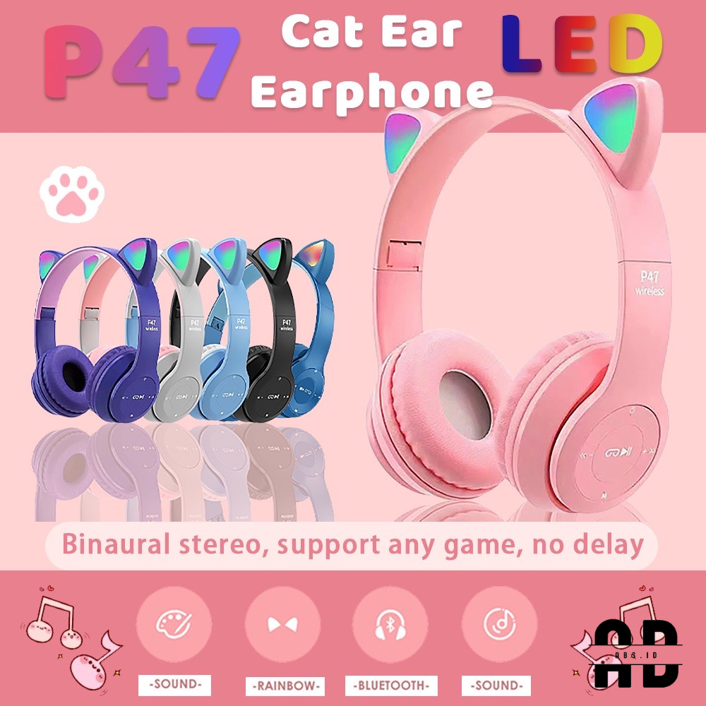 ABS - P47M Headphone Bluetooth Gaming Cat Ears Wireless Bluetooth RGB Led Light Super Bass Stereo Bando Headset Gaming T