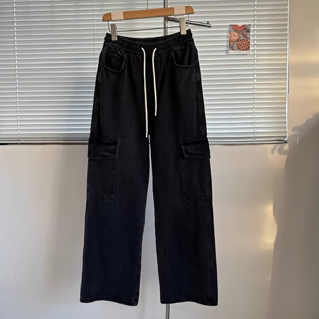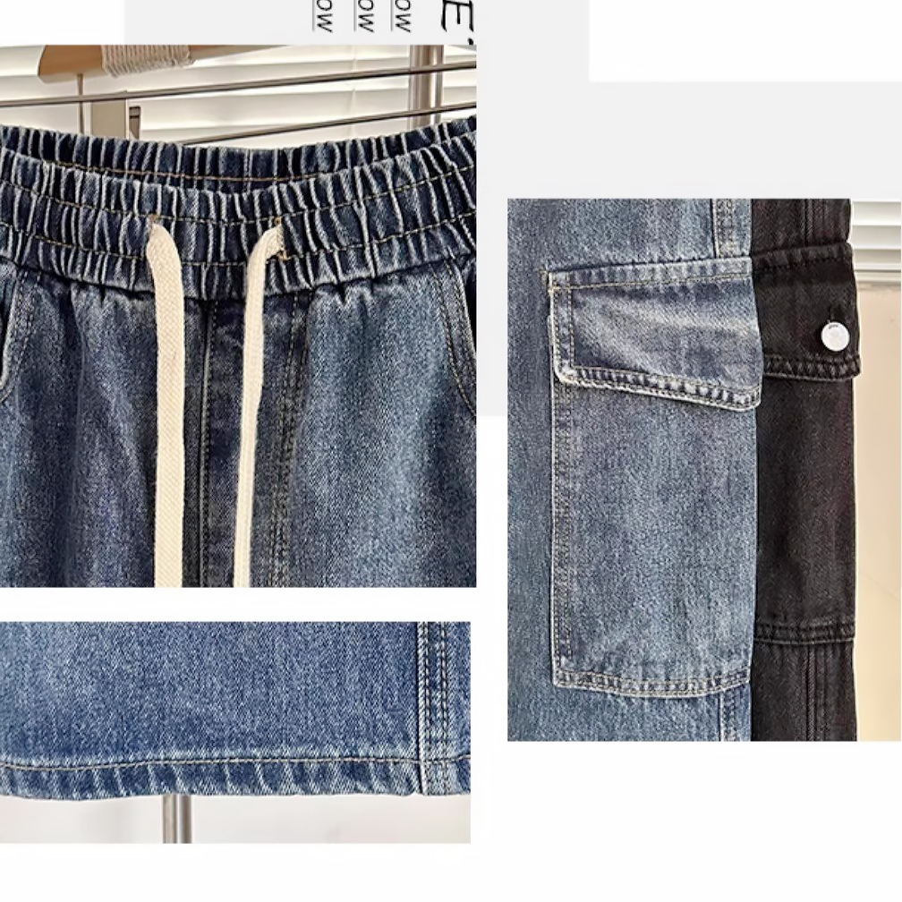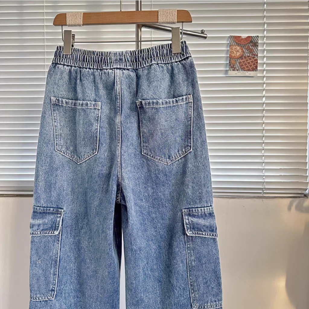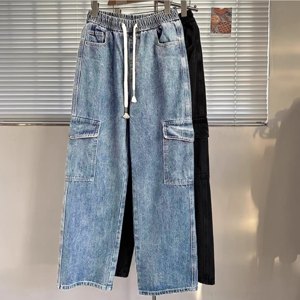 [UNISEX] S-5XL Cargo Jeans Saku Kantong Tempel Jeans Cargo Jeans Pinggang Elastis Adjustble Waist Jeans Celena Panjang Jeans