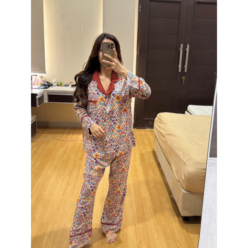 Ladicesleepwear - Baju Tidur One Set Bahan Rayon Premium Model Celana Panjang Tangan Panjang Motif Terbaru