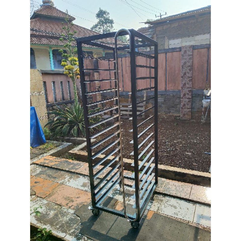 1 set troly rak loyang roti 15susun 60x40+cover profing anti debu/rak loyang bakery/rak loyang susun