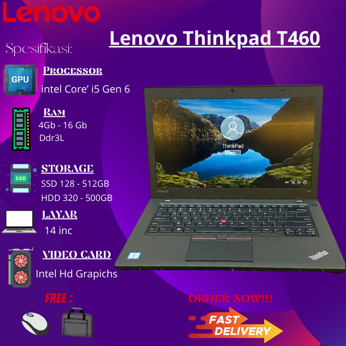 Laptop Lenovo ThinkPad Core i7 / i5 RAM 8GB SSD 256GB Like New Bergaransi Murah