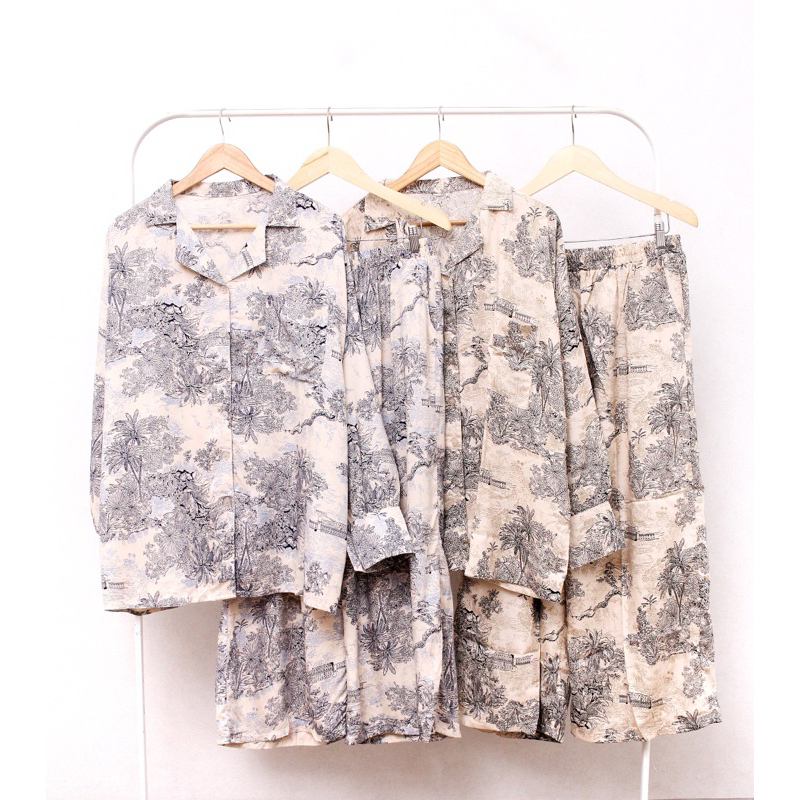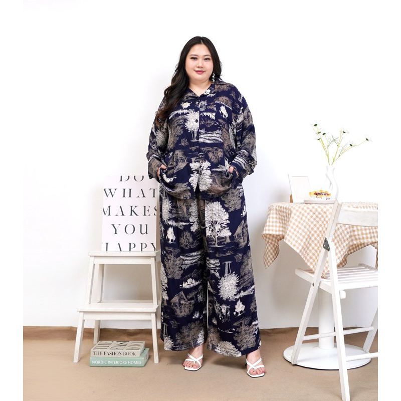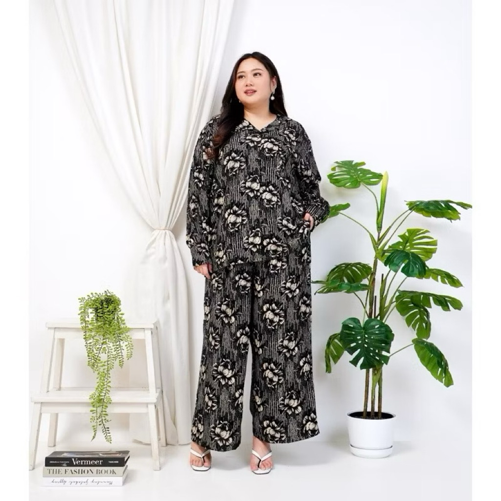 ONE SET WANITA RAYON LD 140 CM MOTIF LENGAN PANJANG SETELAN PIYAMA JUMBO KEKINIAN