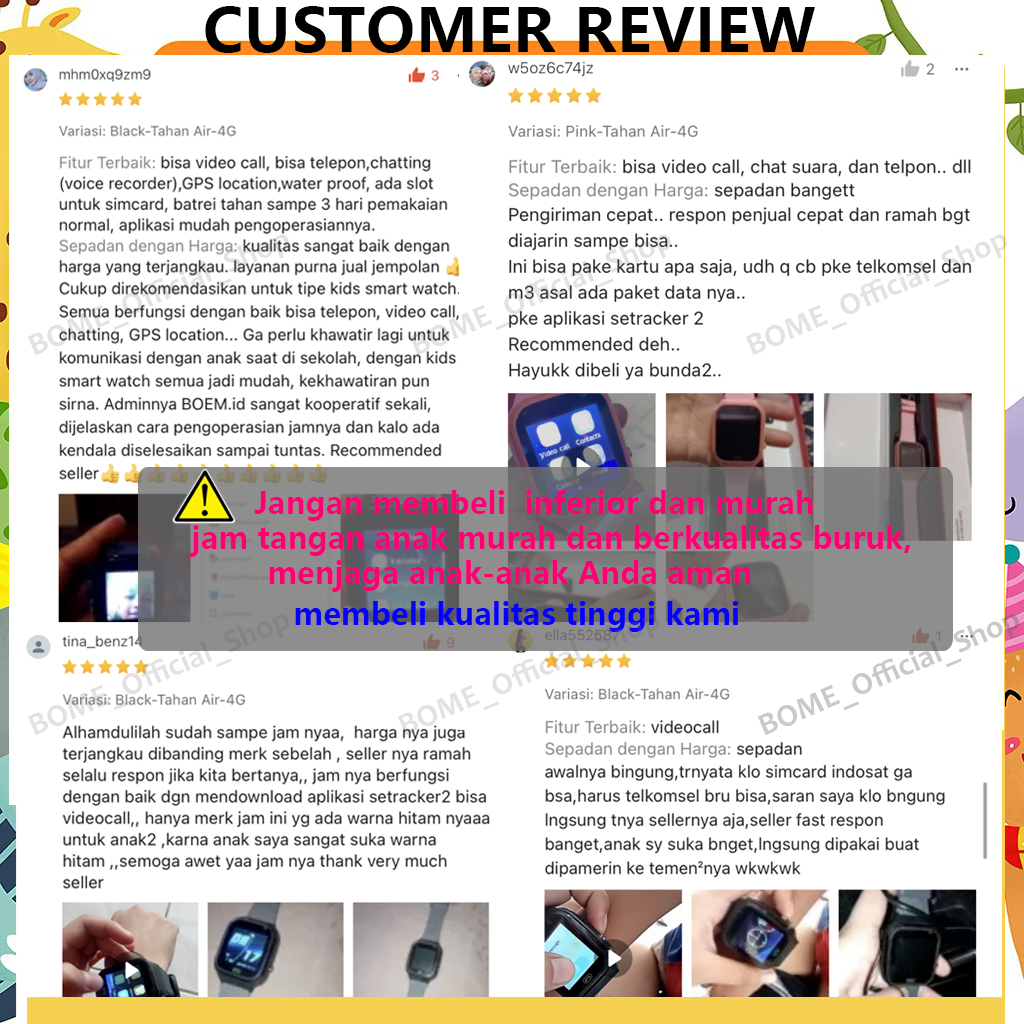 Anti Air Jam tangan anak 4G Video call telepon - anak Gps Digital Smartwatch anak Waterproof Kids Smart Watch(video call, telepon call, Gps, SOS, panggilan, jam alarm, foto, kalkulator, timer.....)