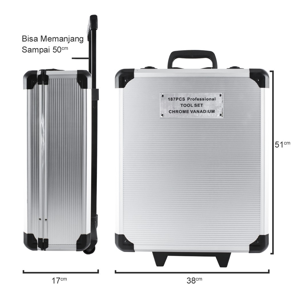 Reaim Tool Kit 187 PCS alat kunci pas soket Set obeng set Perkakas Bengkel Dan Rumah Koper Lengkap Bahan Kuat