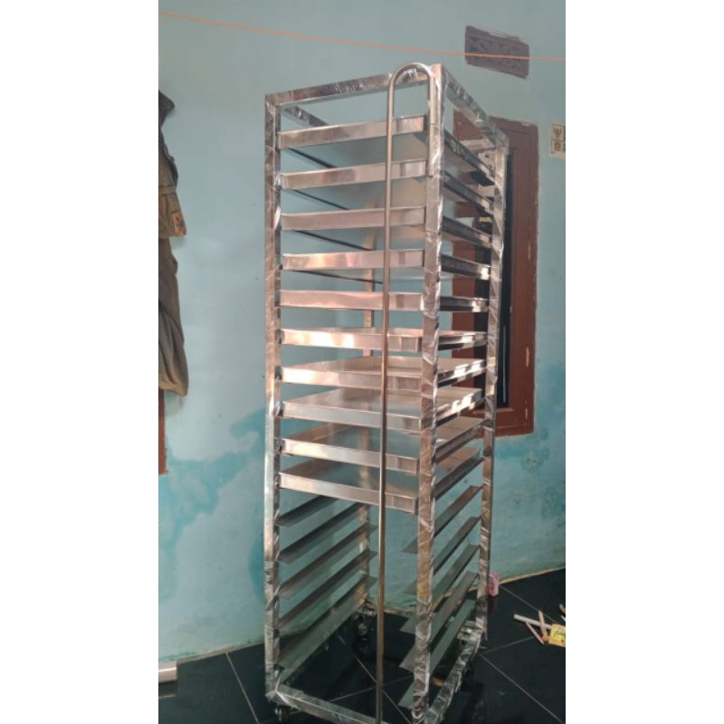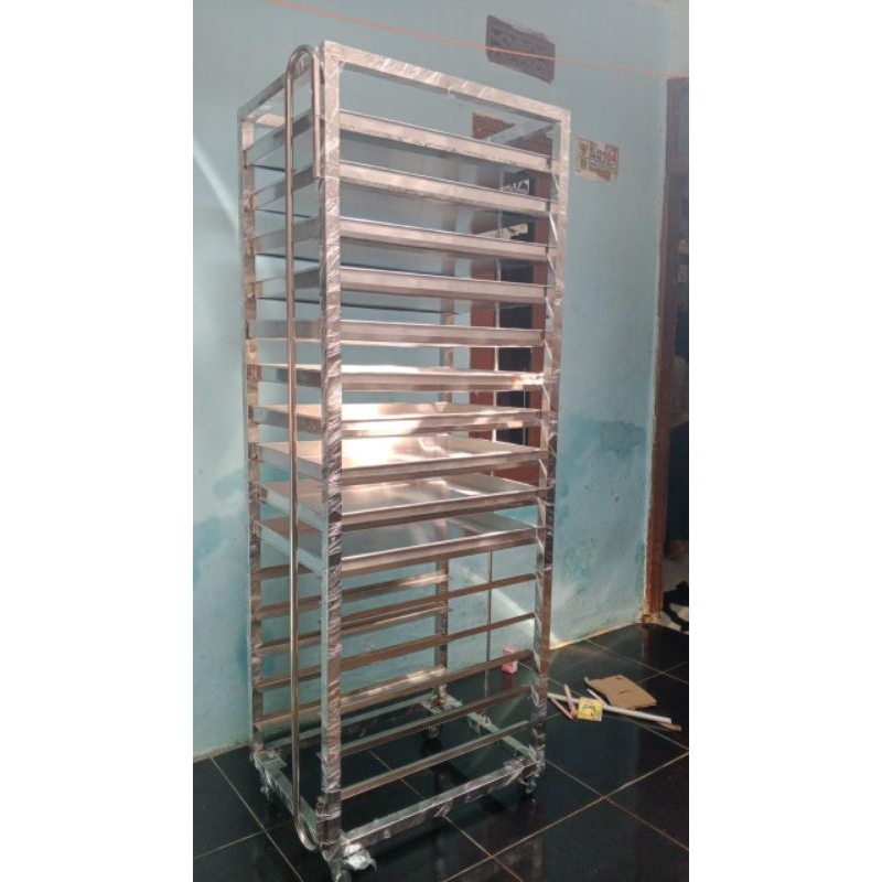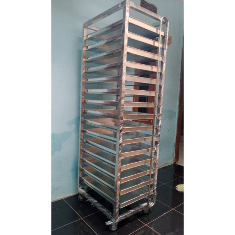 Rak Troli Bahan Stainless 15 Susun Loyang Ukuran 60x40 cm