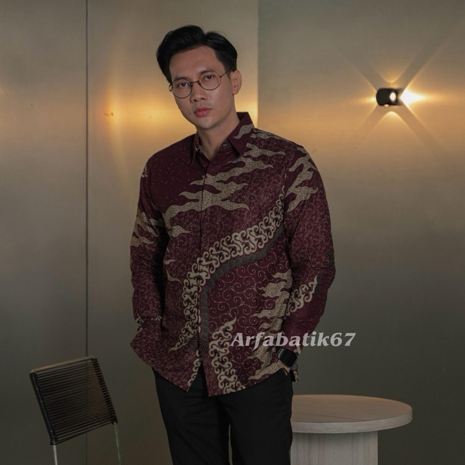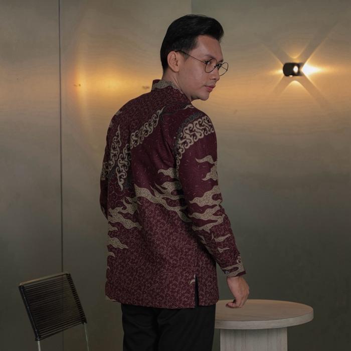 CAKRA BURGUNDY Kemeja batik pria lengan panjang katun prima premium lapis furing hero ready