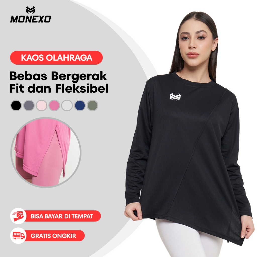 Monexo - Baju Olahraga Wanita Lengan Panjang Hijab Sport T-Shirt Yoga Oversize Run13