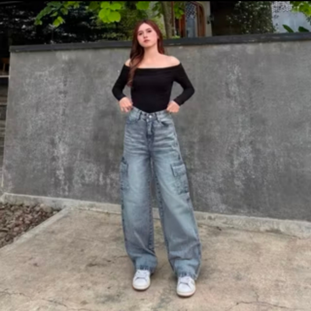 CELNA BAGGY JEANS CARGO RETRO WANITA/HIGWAITS CARGO JEANS WANITA CELANA CARGO BAGGY JEANS UNISEX