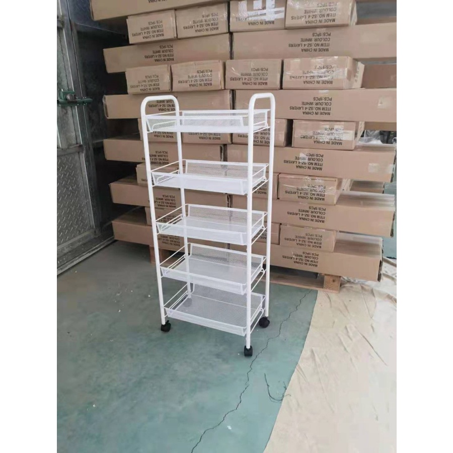 Rak Trolly Roda 5 Susun Besi Coating Putih Hitam