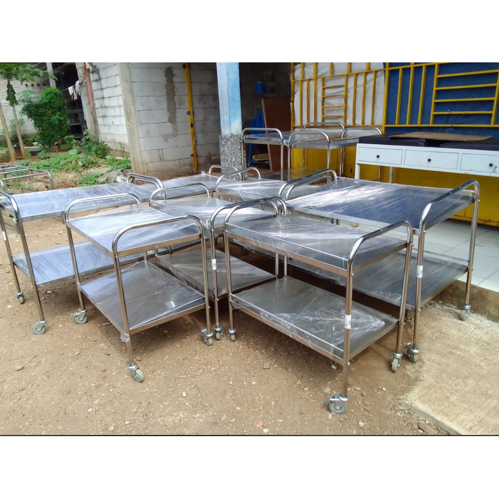 Trolley MBG 2 Rak Susun BAHAN STAINLESS 304 Standar Restoran