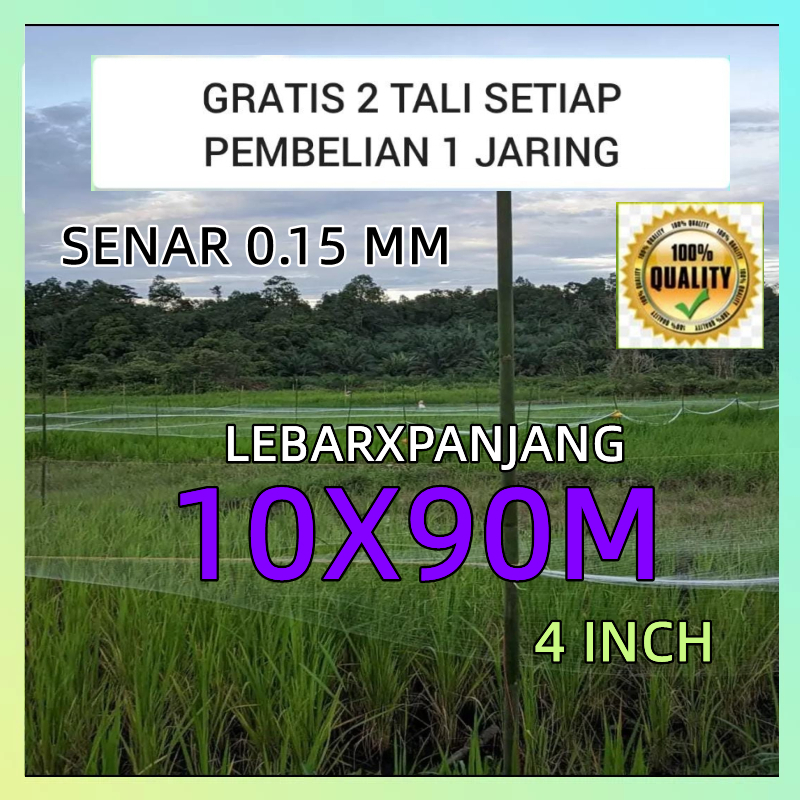 Jaring Padi Penutup Sawah Senar 0.15/ Jaring Burung Pipit Dan Emprit / Jaring 10X90M