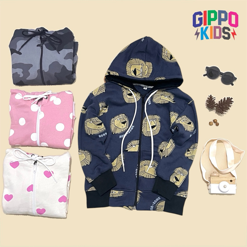 Jaket Zipper Anak Gippokids Hoodie 1 -6 Tahun Hoodie Anak Cewek & Cowok Bahan Fleece Cotton