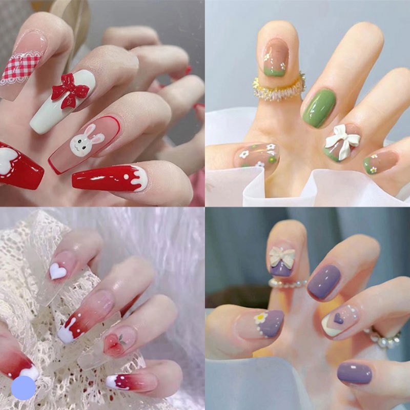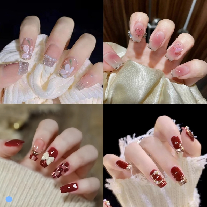 Kuku Palsu Panjang Berlian 24 Pcs Nail Art 3D Nail Art Fake Nails