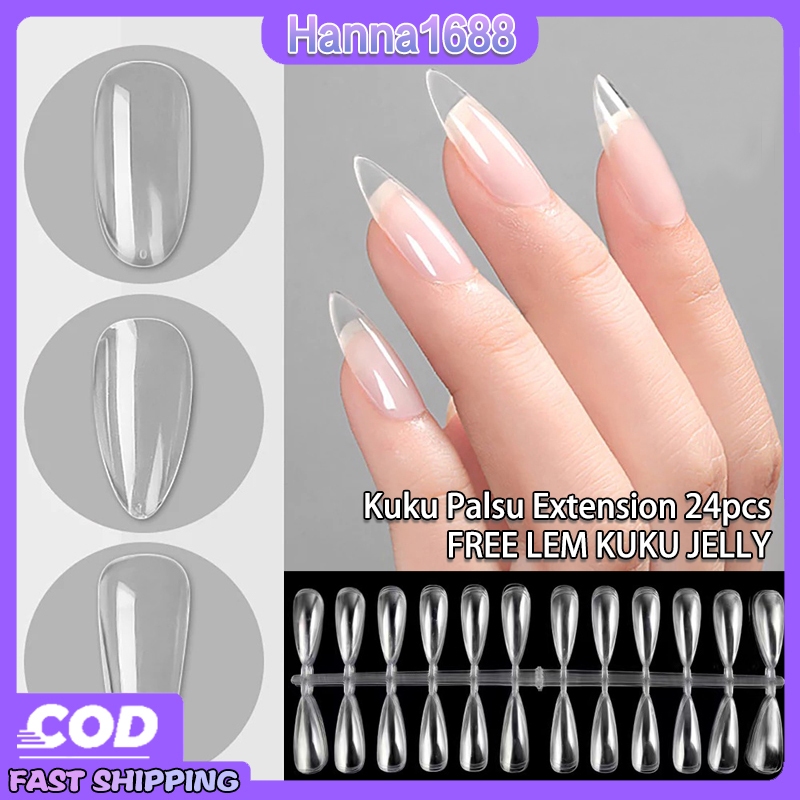 Kuku Palsu Extension 24Pcs Free Lem Uv Nail Art Akrilik Diy Natural Nail Art Kuku Palsu Transparan