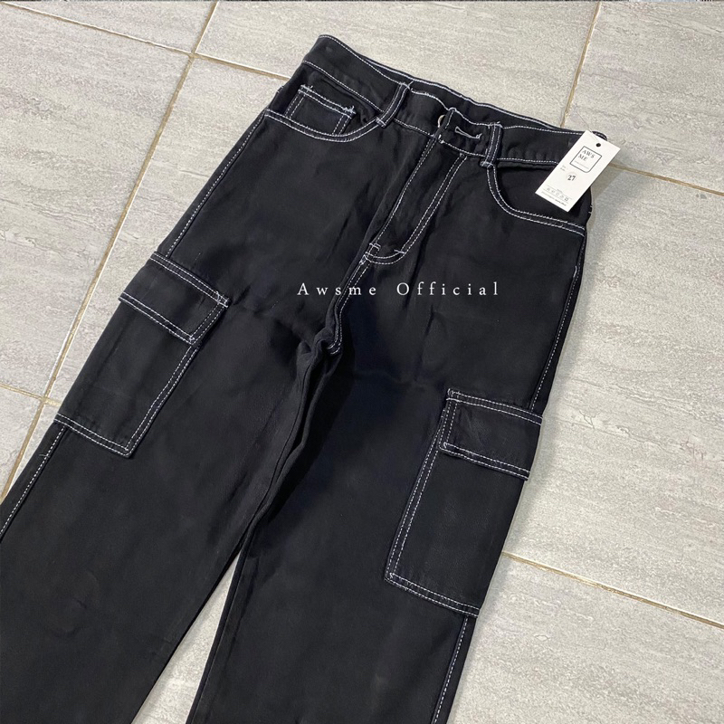 Awsme - Cargo Jeans Black Oreo / Highwaist Loose Cargo Jeans