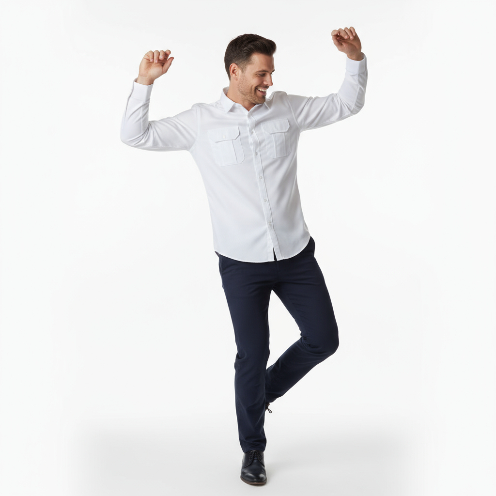Tangiowild Baju Atasan Kemeja Putih PDH PDL ASN PNS Lapangan Outdor Kantong Dua Pria Cowok Lengan Panjang Kameja Putih P