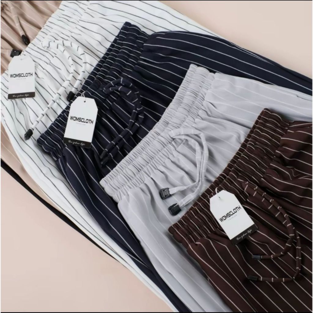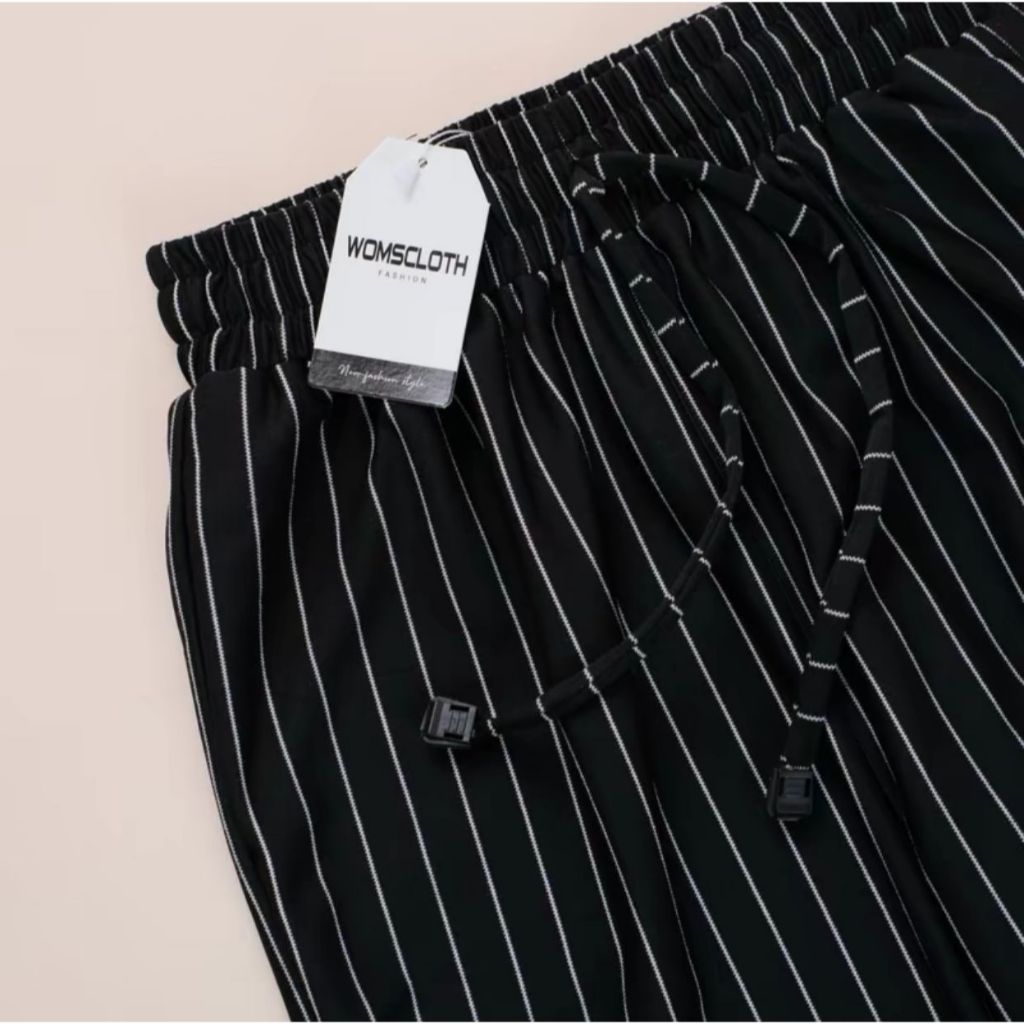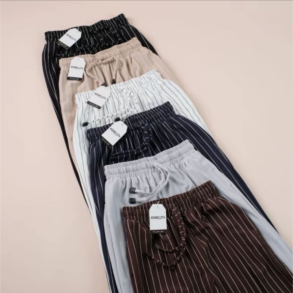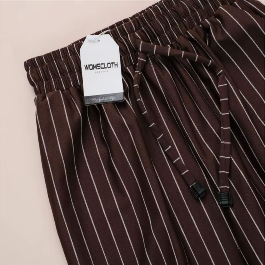Haziera - Everyday Pants - Stripe Pants Bangkok - Celana Panjang Wanita Baggy Kantor Kuliah Motif Garis Kulot Pinstripe