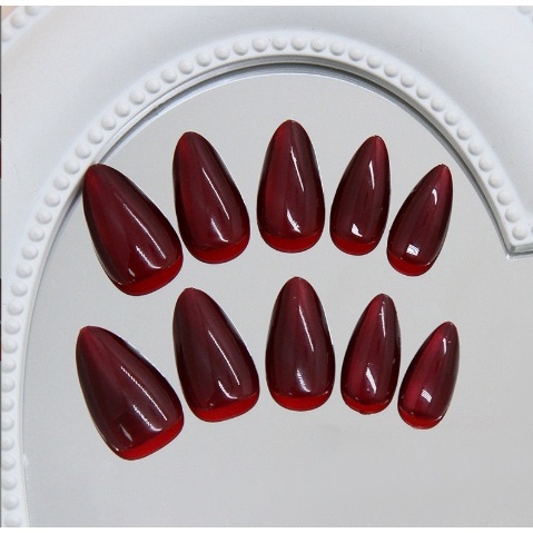 Kuku Palsu Cat Eye Super Short Pendek Merah Maroon Isi 15 Dus Plus Lem