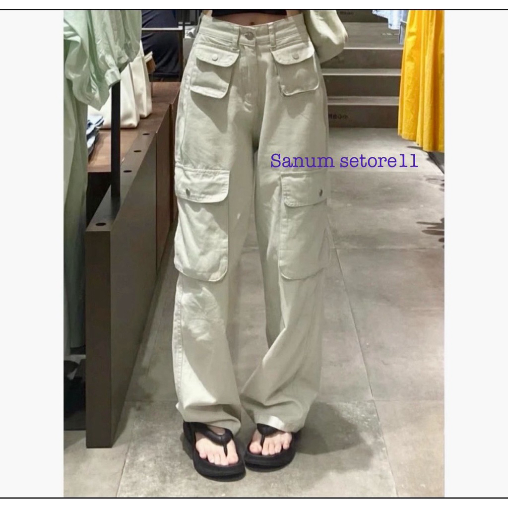 celana cargo jeans korean stayl hight waist preium