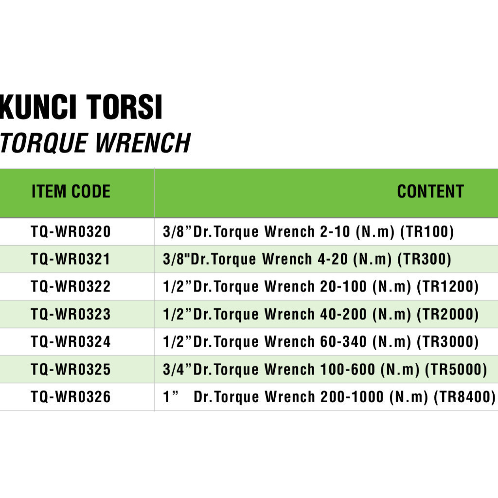 TEKIRO KUNCI TORSI TORQUE WRENCH TYPE TR SERIES MODEL RATCHET