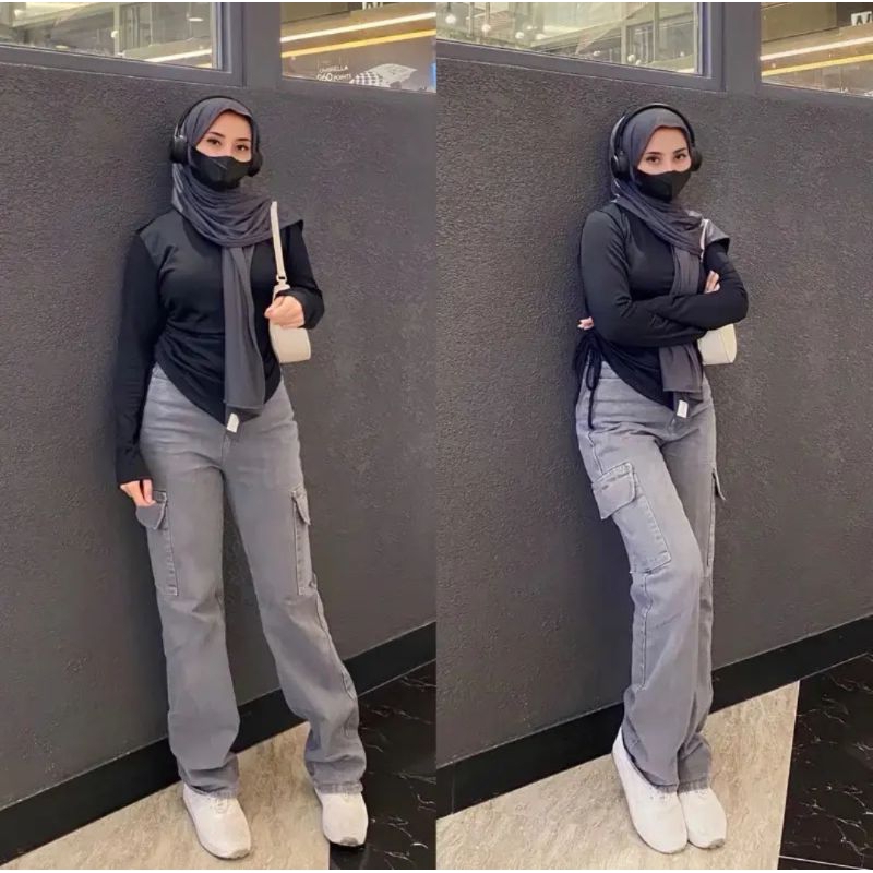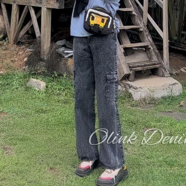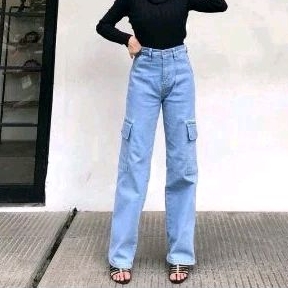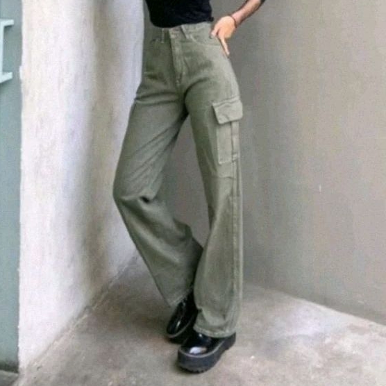 Celana Cargo Jeans Highwaist Celana Panjang Kargo Celana Kulot Jeans Cargo