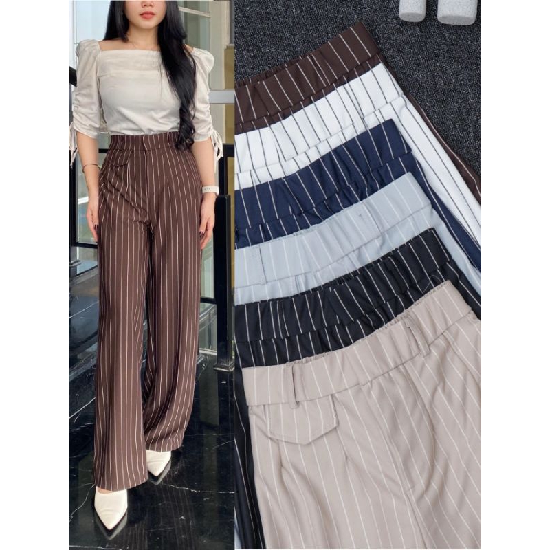 Celana Kulot Oro Pants Stripe Bangkok Wanita - Celana Kulot Loose Pants Highwaist Wanita Premium Anti Kusut