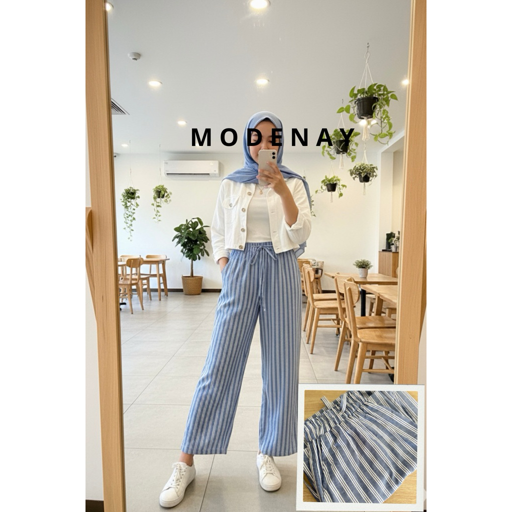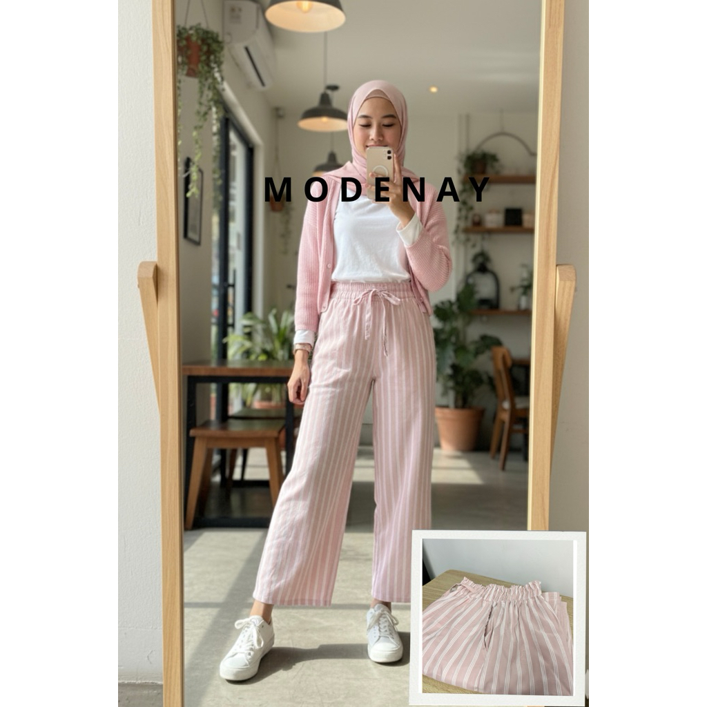 Celana Kulot Salur Wanita Stripe Pants Haruka All Size