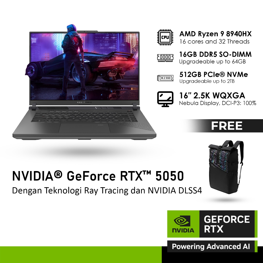 ASUS ROG STRIX G16 G614PH GeForce RTX™ 5050 8GB - RYZEN 9 8940HX 16GB 512GB WINDOWS 11 16.0 INCH