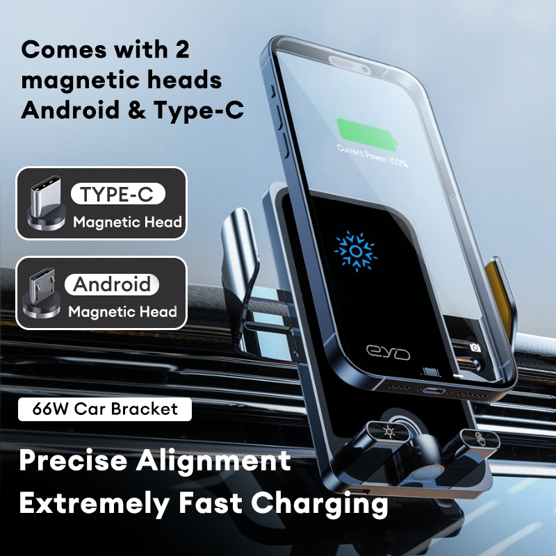 EYD F18 Car Wireless Charger Mobil Holder 66W Super Fast Magnetic Charger Mobil Wireless Bottom Charging No-shaking 360° Rotation Car Phone Stand For All Phone