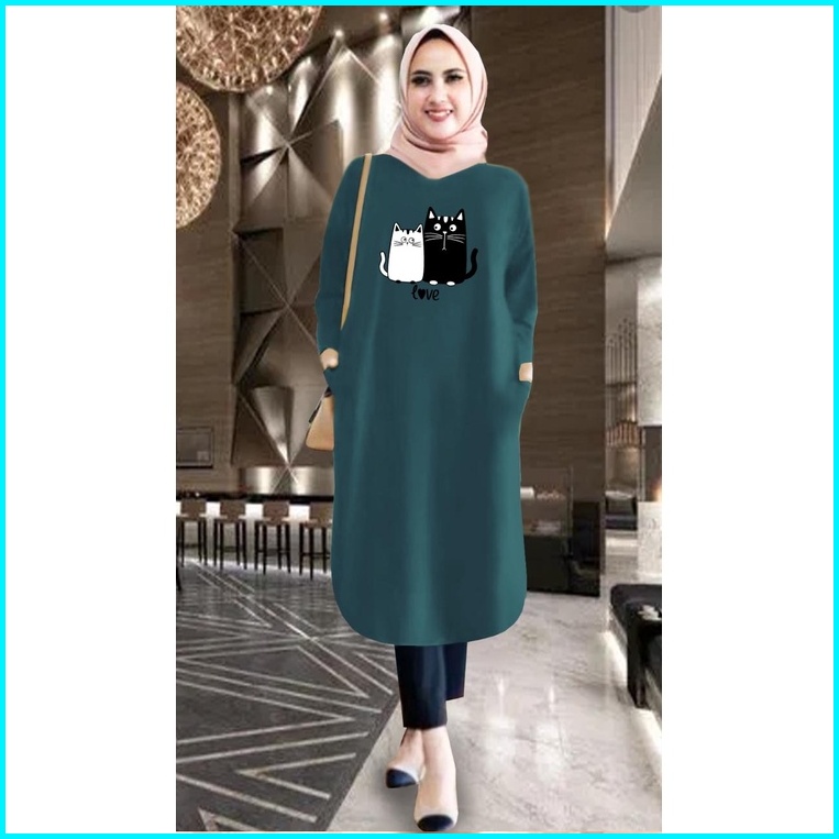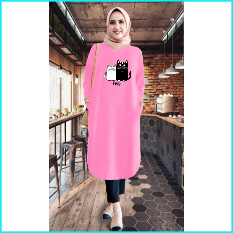 Tunik Wanita Kantong Bahan Babyterry Motip Meow Love