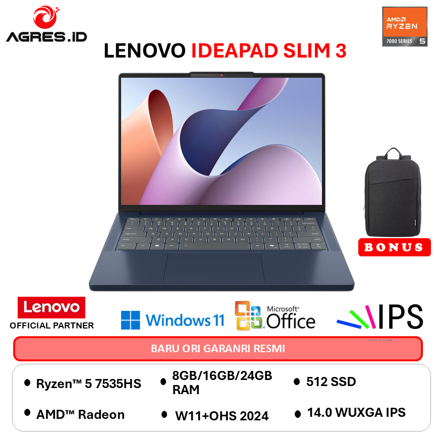 LENOVO IDEAPAD SLIM 3 14 RYZEN 5 7535HS - RAM 24GB 512GB W11+OHS 14.0WUXGA IPS -5KID