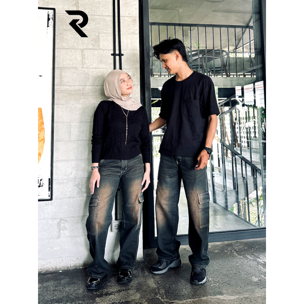 (UNISEX) Celana Cargo Jeans Hightwaist, Celana Cargo Jeans Korea Style, Celana Kulot Jeans