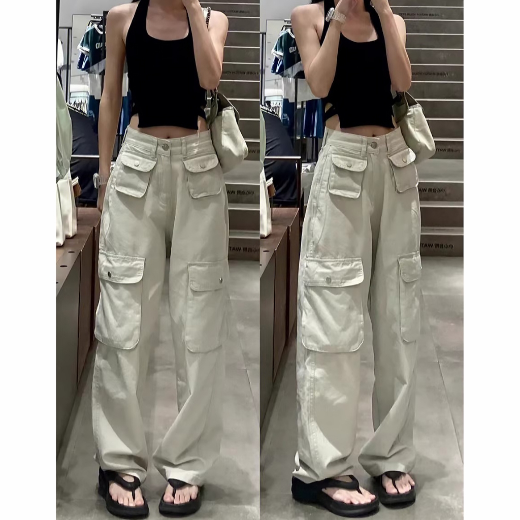 Celana Cargo Denim Highwaist Loose Celana Panjang Wanita Korea