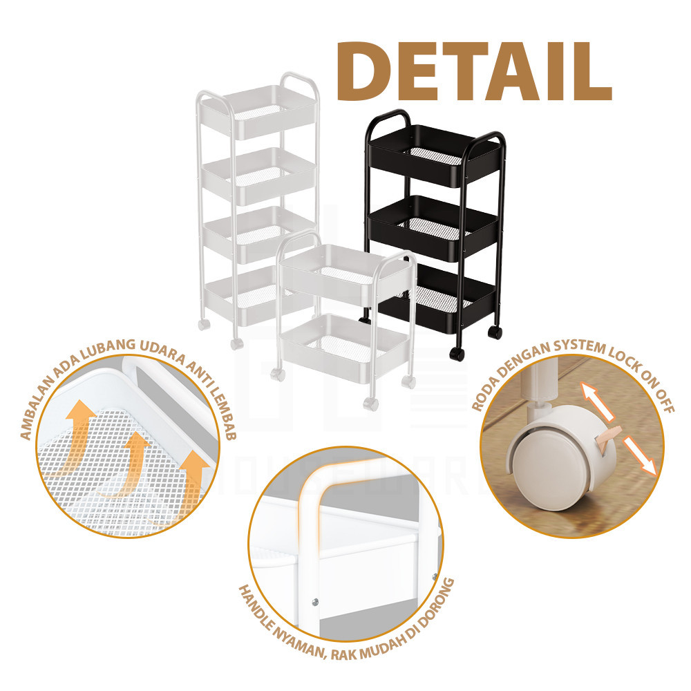 Rak Trolley Serbaguna 3 Susun / Troli Besi 3 Tingkat Maggie / Troli Salon / Troli Dentist ada Roda