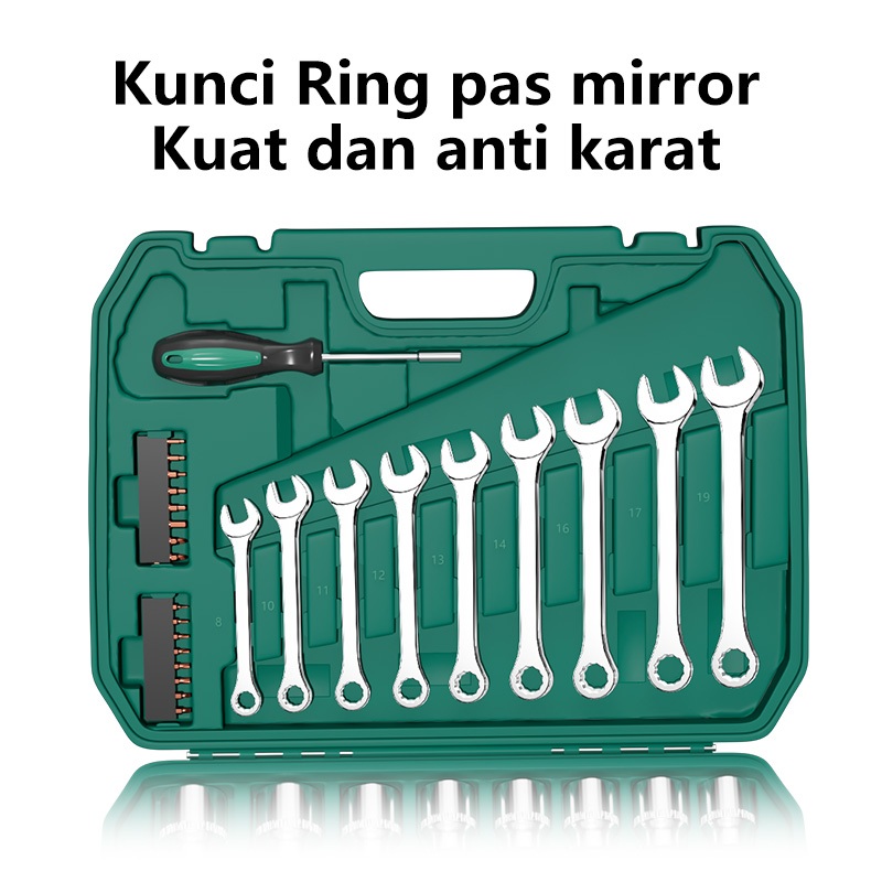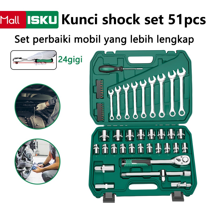 ISKU Kunci Sok Set 51pcs 24Gigi/72Gigi Gagang Rachet Tool Kit Set/Termasuk 9pcs Kunci Ring Pas Set 8-19mm Dan 19pcs 1/2