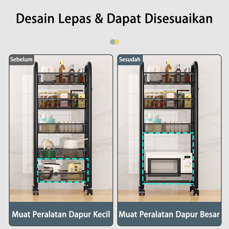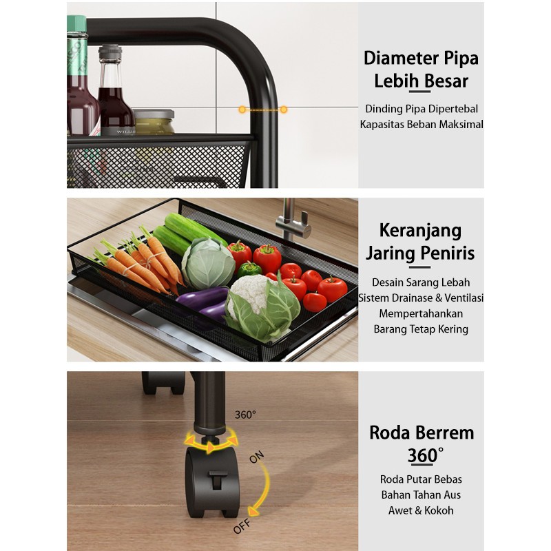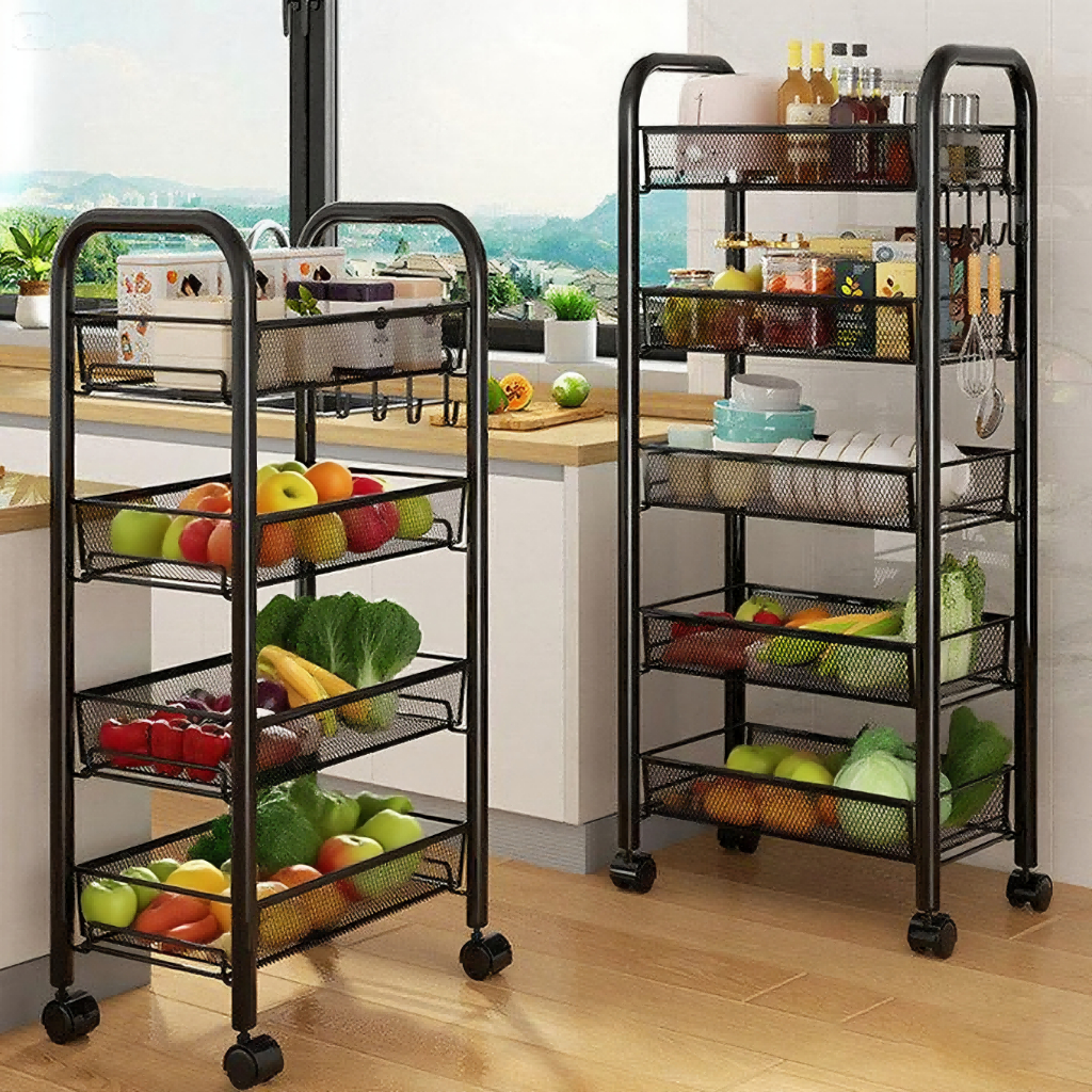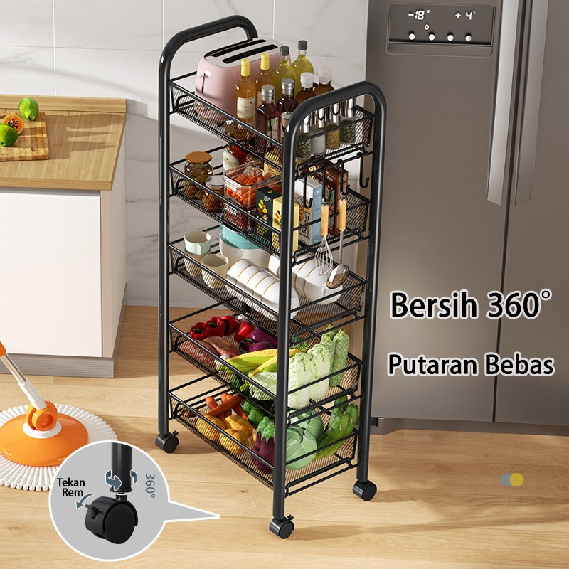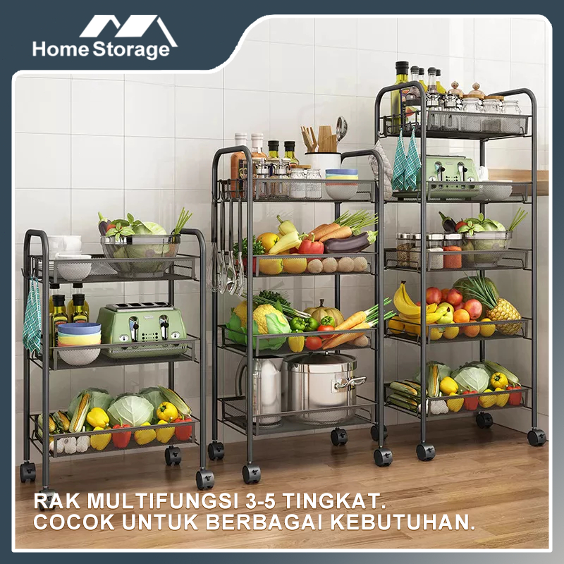 Rak Troli Logam 3/4/5 Susun Rak Penyimpanan Serbaguna untuk Dapur