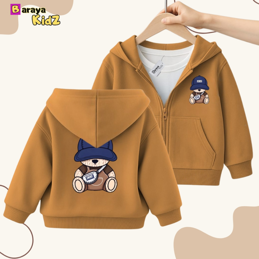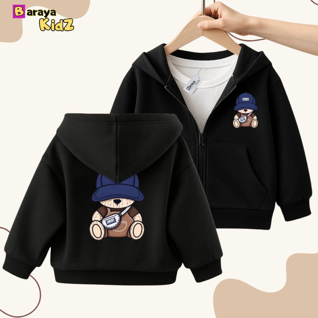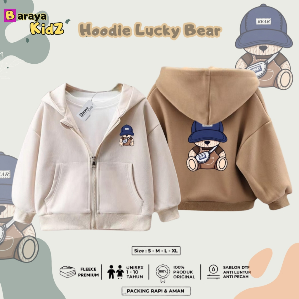 Jaket Hoodie Zipper Lucky Bear Anak Laki Laki Perempuan Usia 1-8 Tahun Hoodie Jaket Unisex Motif