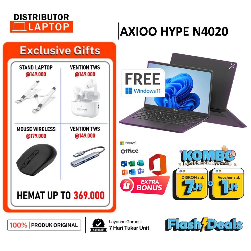 PROMO LAPTOP AXIOO HYPE 10 HYPE 1 INTEL CELERON N4020 8GB 384GB 256GB 128GB W11 OFFICE 14.0 NOTEBOOK