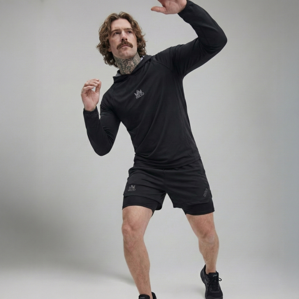 IRCO Baselayer Hoodie Water Repellent Long Sleeve Stretch Baju Manset Olahraga Hodie Hitam Anti Air