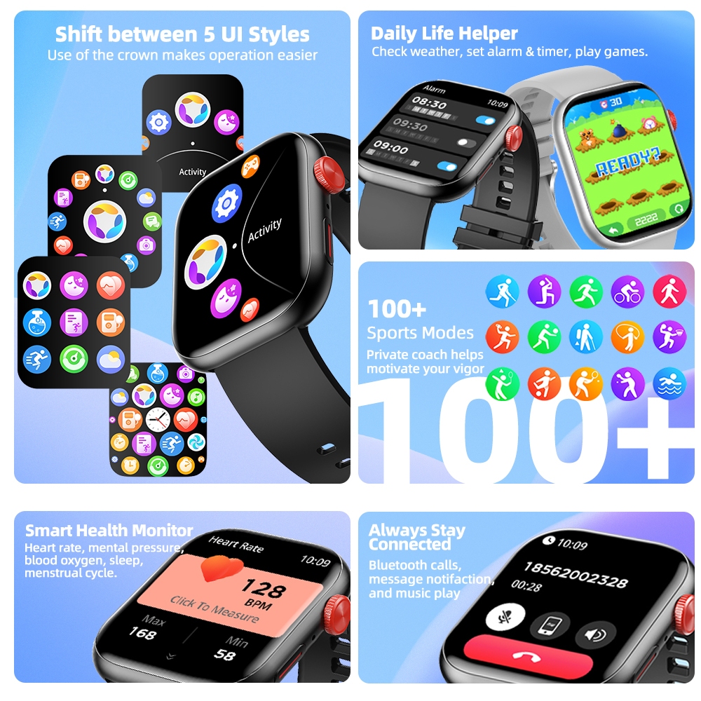 Goojodoq Smart Watch 5in1 Tali yang bisa diganti 2.01 IP67 HD Screen with Strap Blood Pressure Monitor/Voice AI Assistant