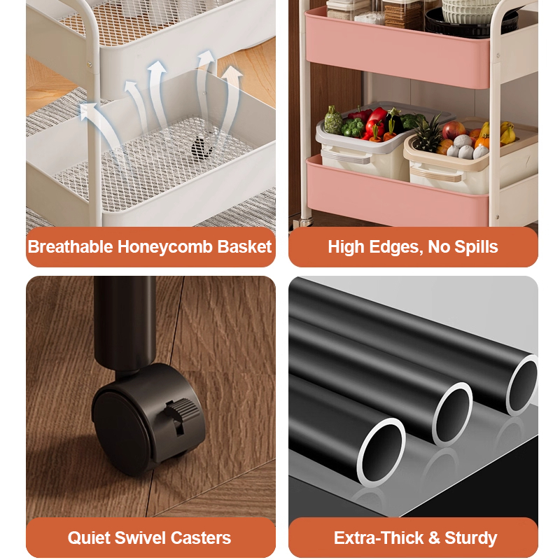 Superace Rak Penyimpanan Roda Serbaguna, Rak Troli Multifungsi, Rak Camilan, Rak Kamar Mandi, Rak Berlapis