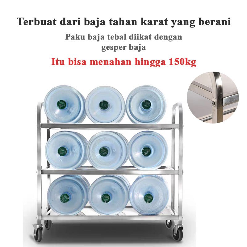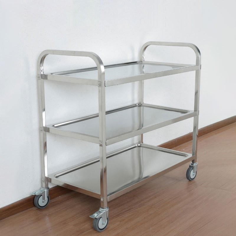 Rak Troli Hidangan 3 Tingkat Pipa Bulat Stainless Steel Hotel 95X45X88 cm Trolly Makan Food Trolly Perak - Standar Resto