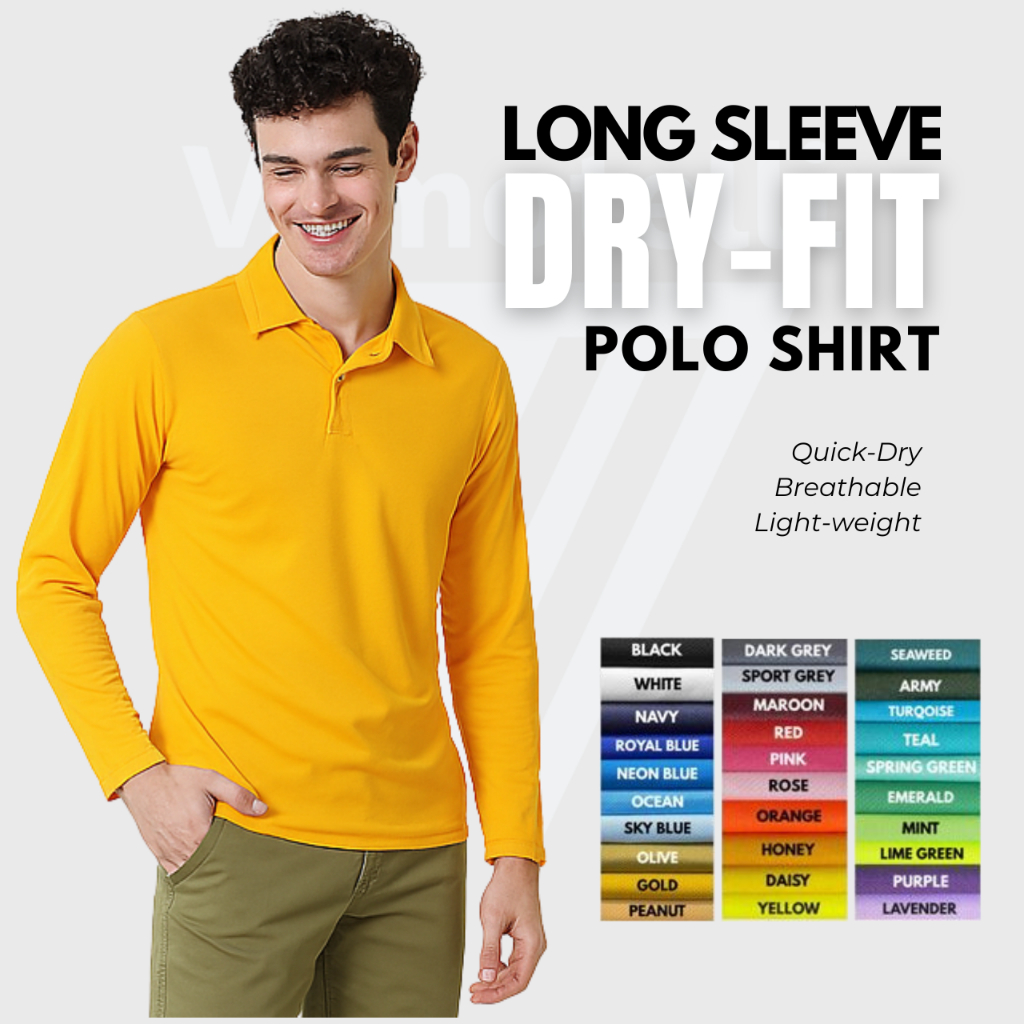 VAMOTELLI Kaos Polo Tangan Panjang Atasan Polos Long Sleeve Bahan Dry Fit Polyester Running