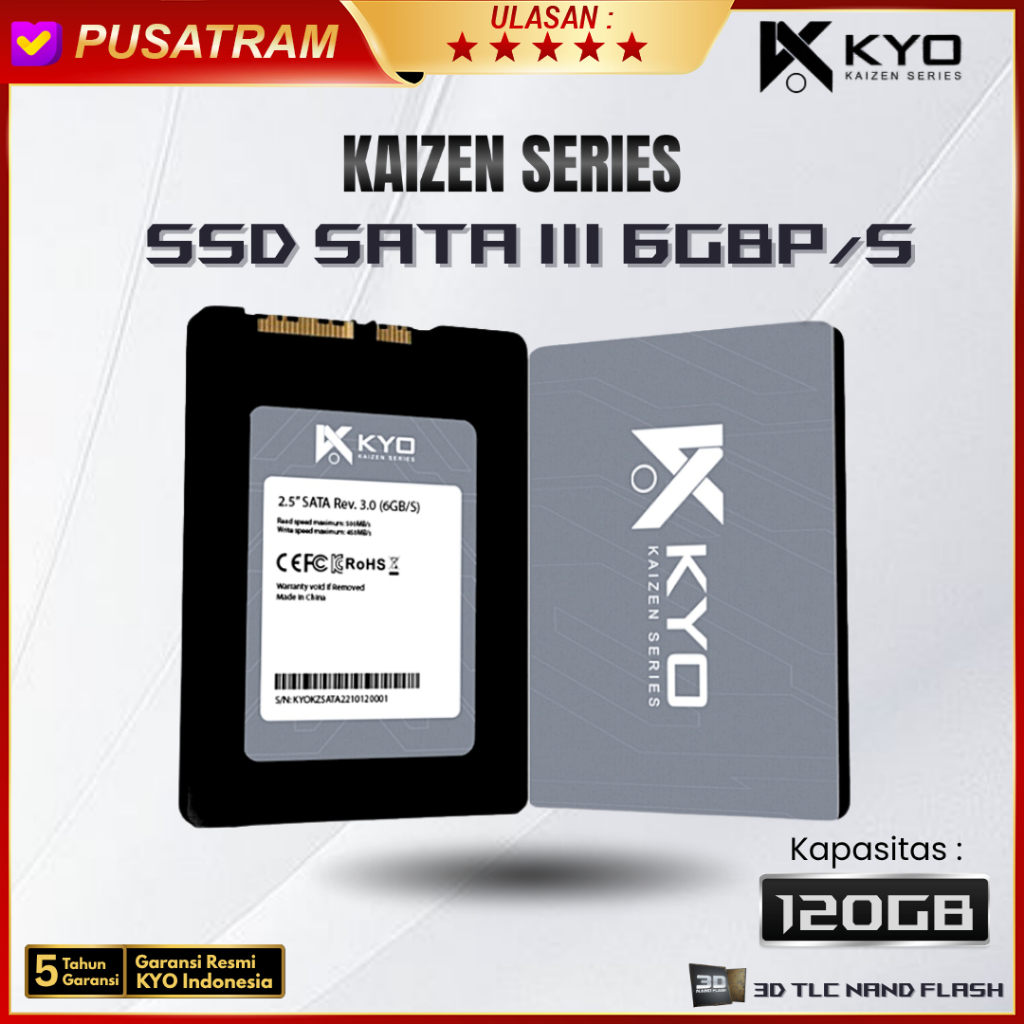 SSD KYO KAIZEN 120GB SATA III 2.5" 6GB/S SSD SATA 3 Garansi Resmi 3D NAND Flash