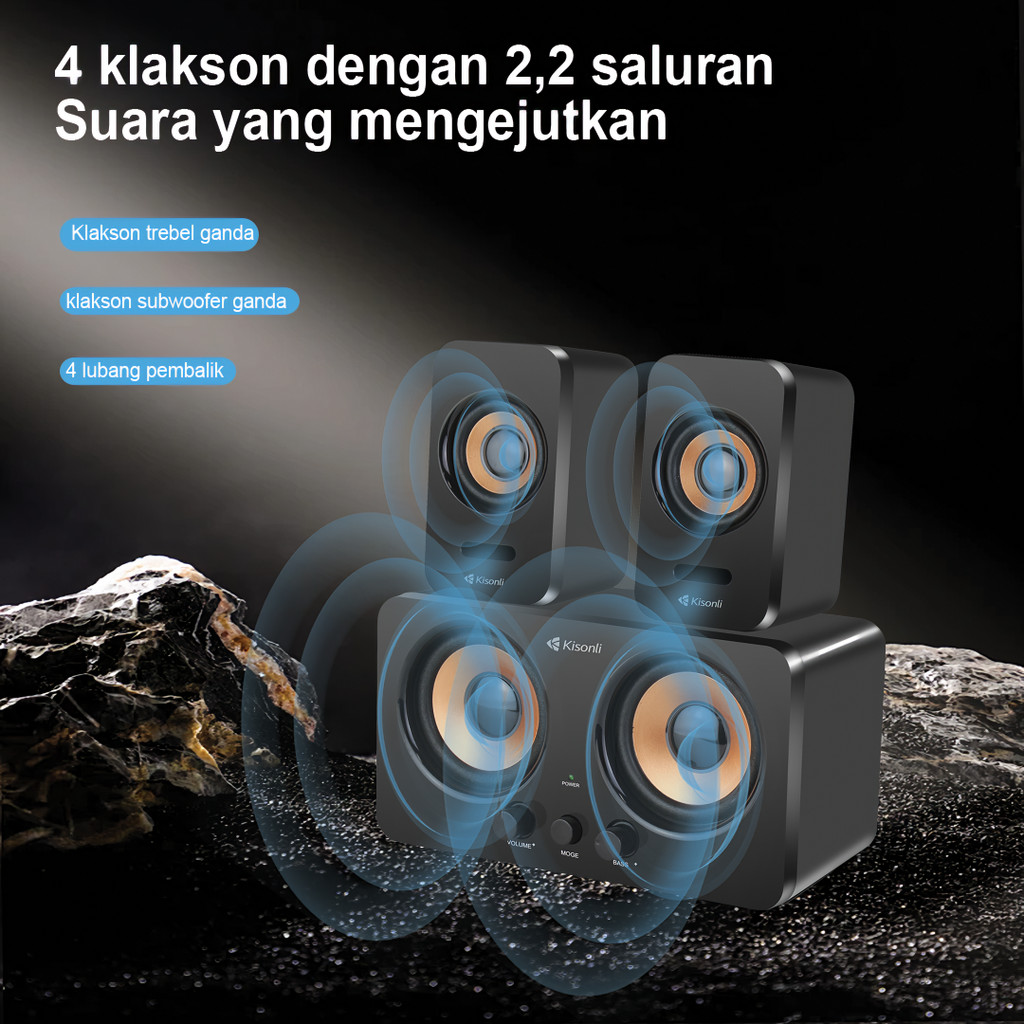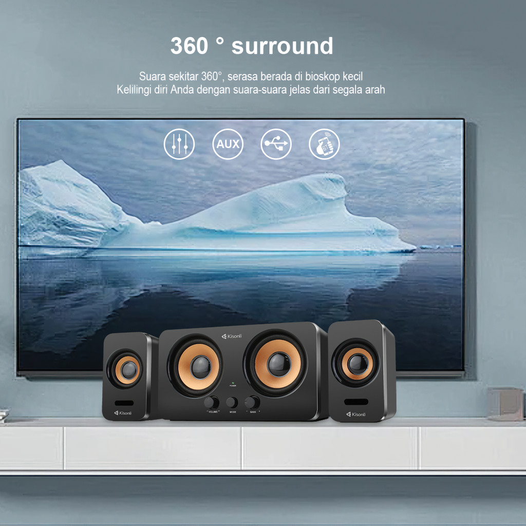KISONLI Speaker Bluetooth Komputer Multimedia U3300BT Stereo Subwoofer AUX, USB