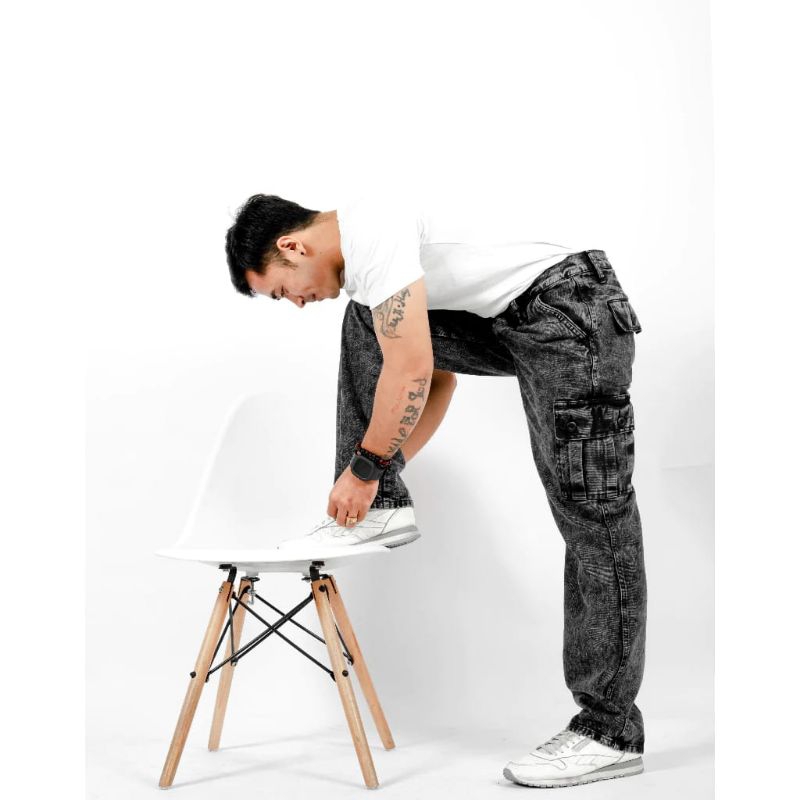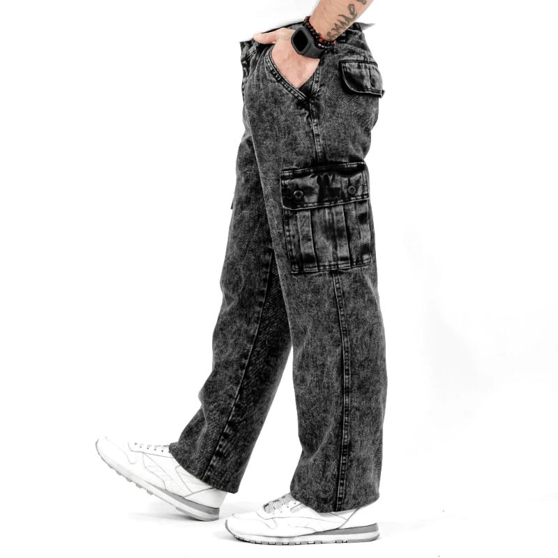 Celana Cargo Jeans Panjang Pria Reguler Standar Loose Fit Cargo Gombrong Jeans Pria Size 27-38 Terbaru